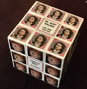 This game cube uses images of several prominent women cut from actual stamps. Each side of the cube has a different woman and is identified with their name and what they are known for. Various themes available.