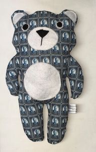 Who could resist the whimsy of little 9" bear using the 1927 Dark Blue Theodore (Teddy) Roosevelt stamp.